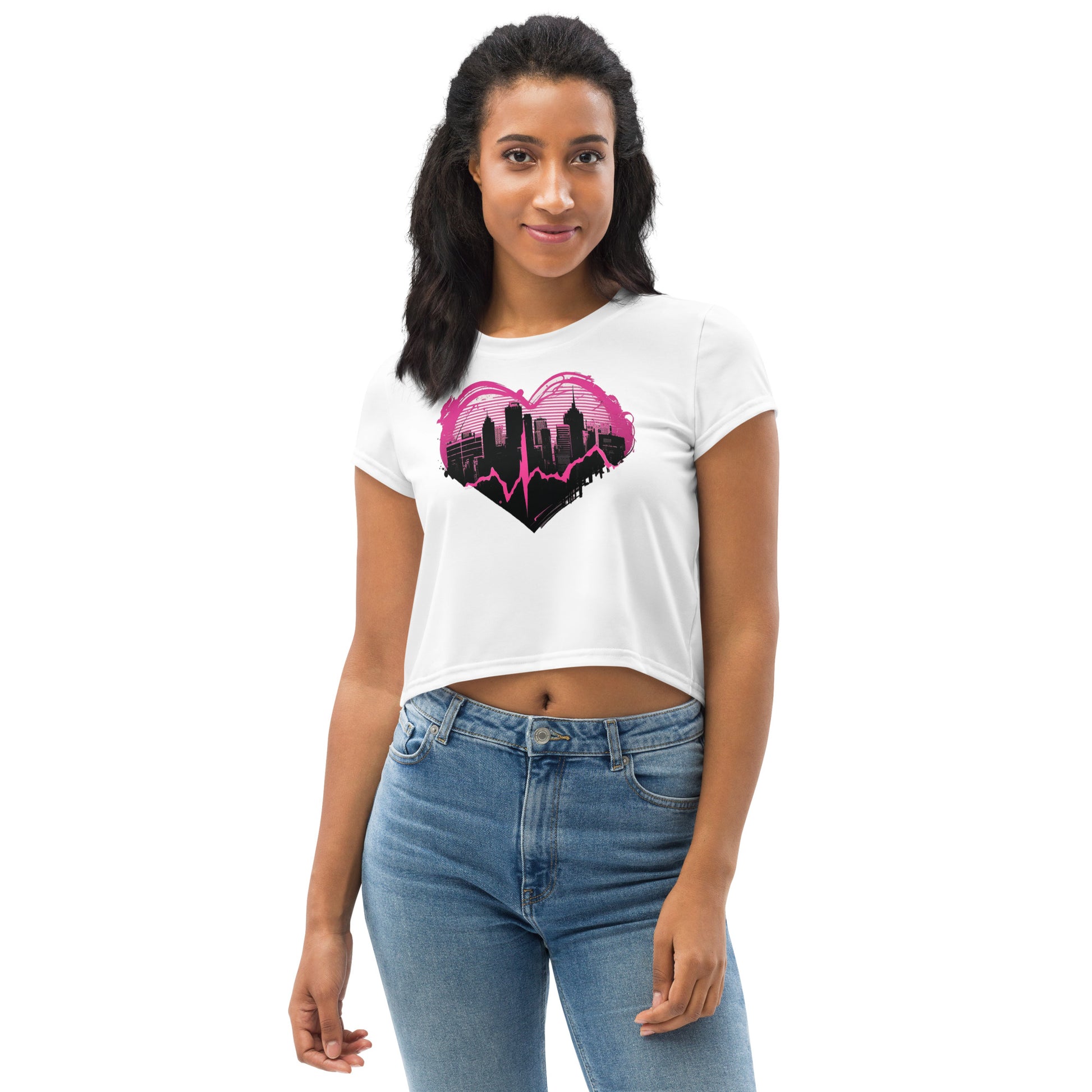 EzPanda® Pulse: Graffiti-Style Heartbeat Women's Crop Tee